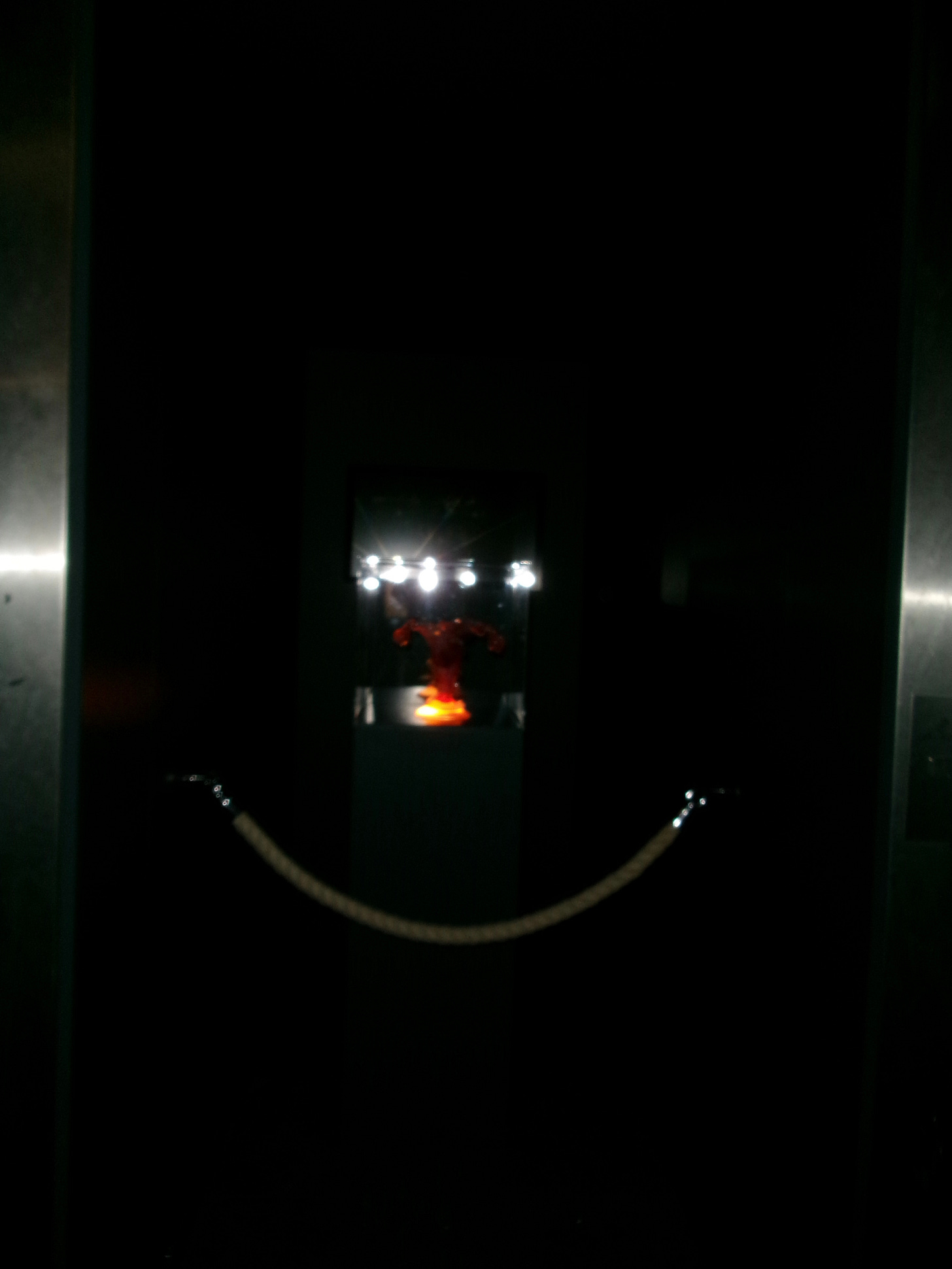How can a person be real? How can a body be air?2 I experience my body nonstop. Everything is blood, bruises, and hunger pangs. Everything is thought, impulse, and propulsion. Where it touches the machine is where it gets interesting. Especially if the touching is inside-to-inside, like the metal coil in my abdomen or the intoxicating refrain that loops in my head. Zip-tied or chained down, pumped with diesel fumes and stimulants, caught in the gore gyre, delicately touched with a peptide-glossed kiss, all of the while emitting language – and what remained, when language left. I had time to kill in Linz, so I went to Ars Electronica to look at the leathers, bowls and plates made from 100% blood — a low-value byproduct of the slaughter industry and a big problem, it turns out, if it isn’t drained properly out of abattoirs or used again to dye butchered cuts a fresher red. This was a “material future.” This was “the whole beast.” This was regenerative consumption. Not eco-friendly green, but oxidised red. Not tender seedlings, but powdered marrow and matte black clots. How can a body be air?